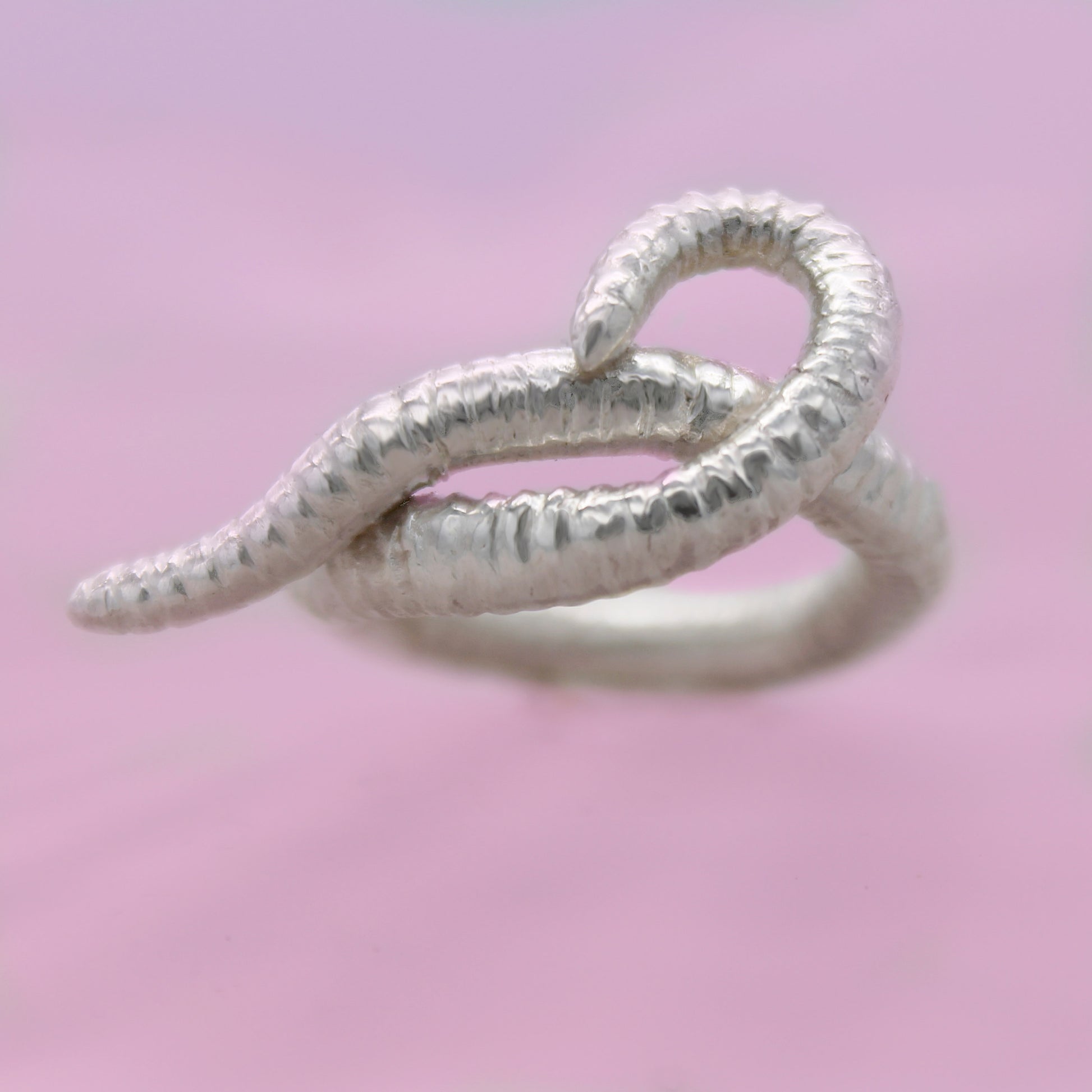 A single curved worm cast in sterling silver, made to order in your size. There will variation from these photos as each worm is made from scratch and then cast in the metal of your chose. $240 for in silver , please make an inquiry for any other metals and i will send u a quote of what it will cost.