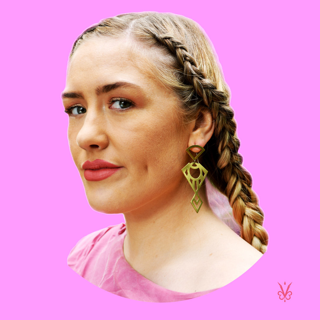 The Goody Goody Seraphim earrings, are divine in there femininity, they are angelic rays of sunshine, or the straight shooting Artemis on a sunny day. These earrings are inspired by the bold lines of the art deco movement in the 1920's and 30's, which in its self was inspired by the art of Africa, the first nation civilizations of the America's, and the pacific to name a few of its progenitors. Think films like 'the Great Gatsby' or "the Grand Budapest hotel.