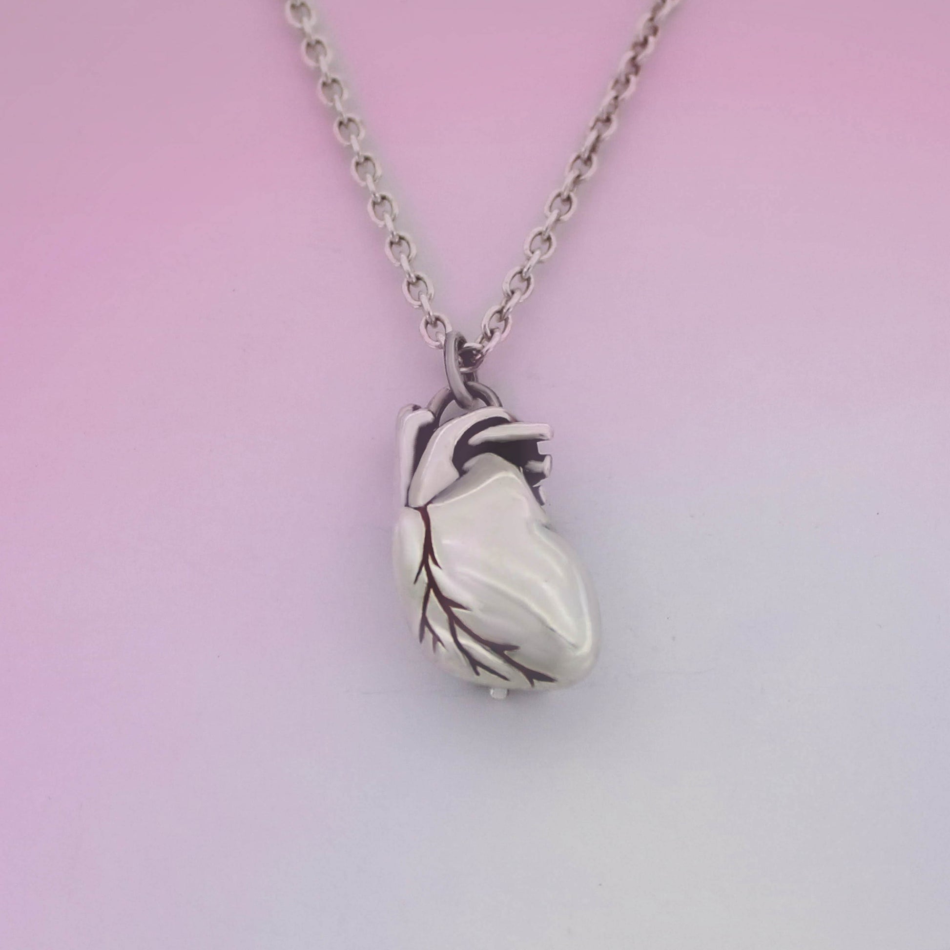 Sterling silver Anatomical heart pendent with red powder coat accents